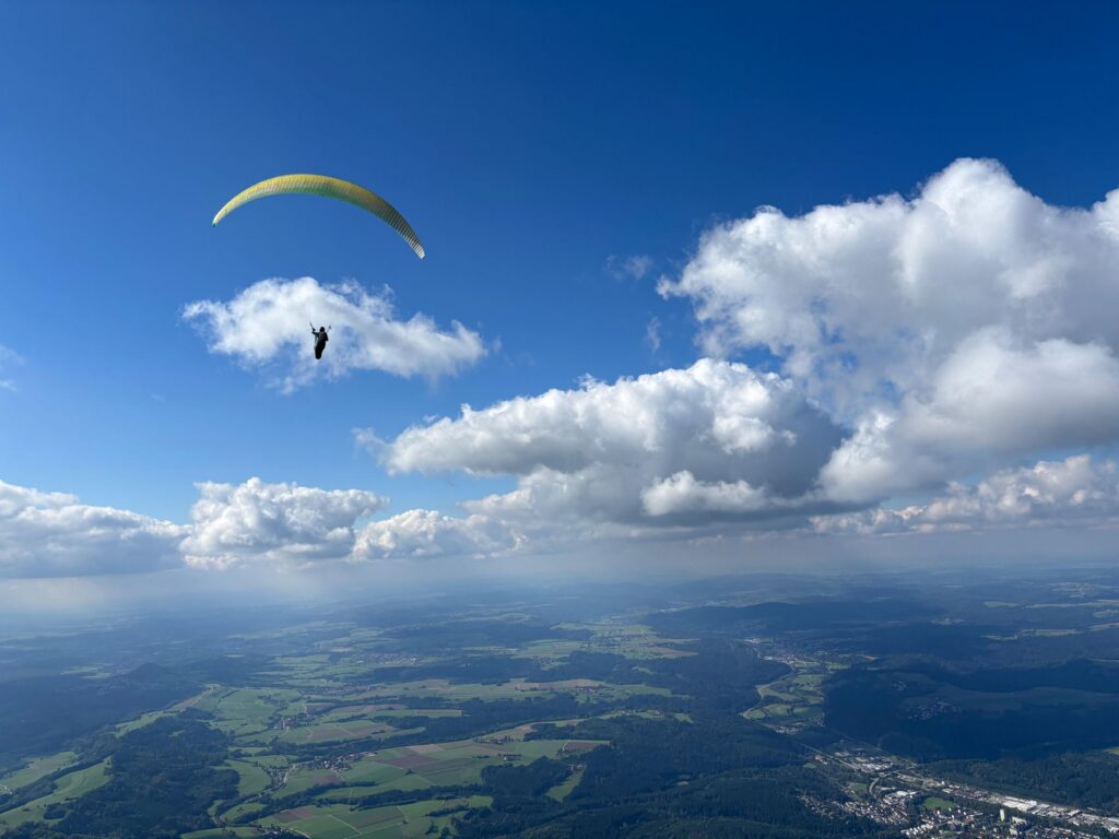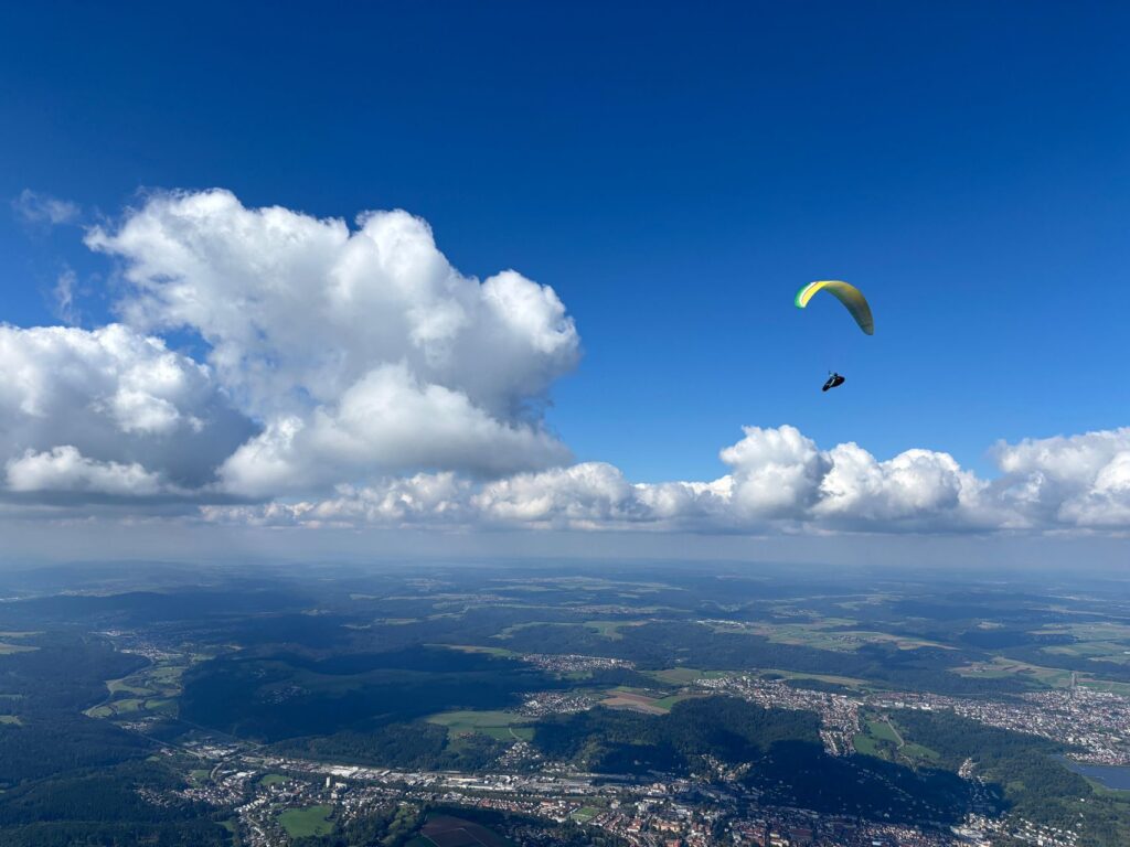 Anfang Oktober drehte sich das Blatt jedoch nochmals. Begünstigt durch eine Ost-Wetterlage strömte frische kalte Luft zu uns nach Süddeutschland und die schon schwächer werdende Sonne schaffte es nochmals brauchbare Thermik und schöne Quellwolken entstehen zu lassen. Wer Zeit hatte nutzte diese Tage für die letzten nennenswerten Thermik- und kleinere Streckenflüge über die Ostalb.